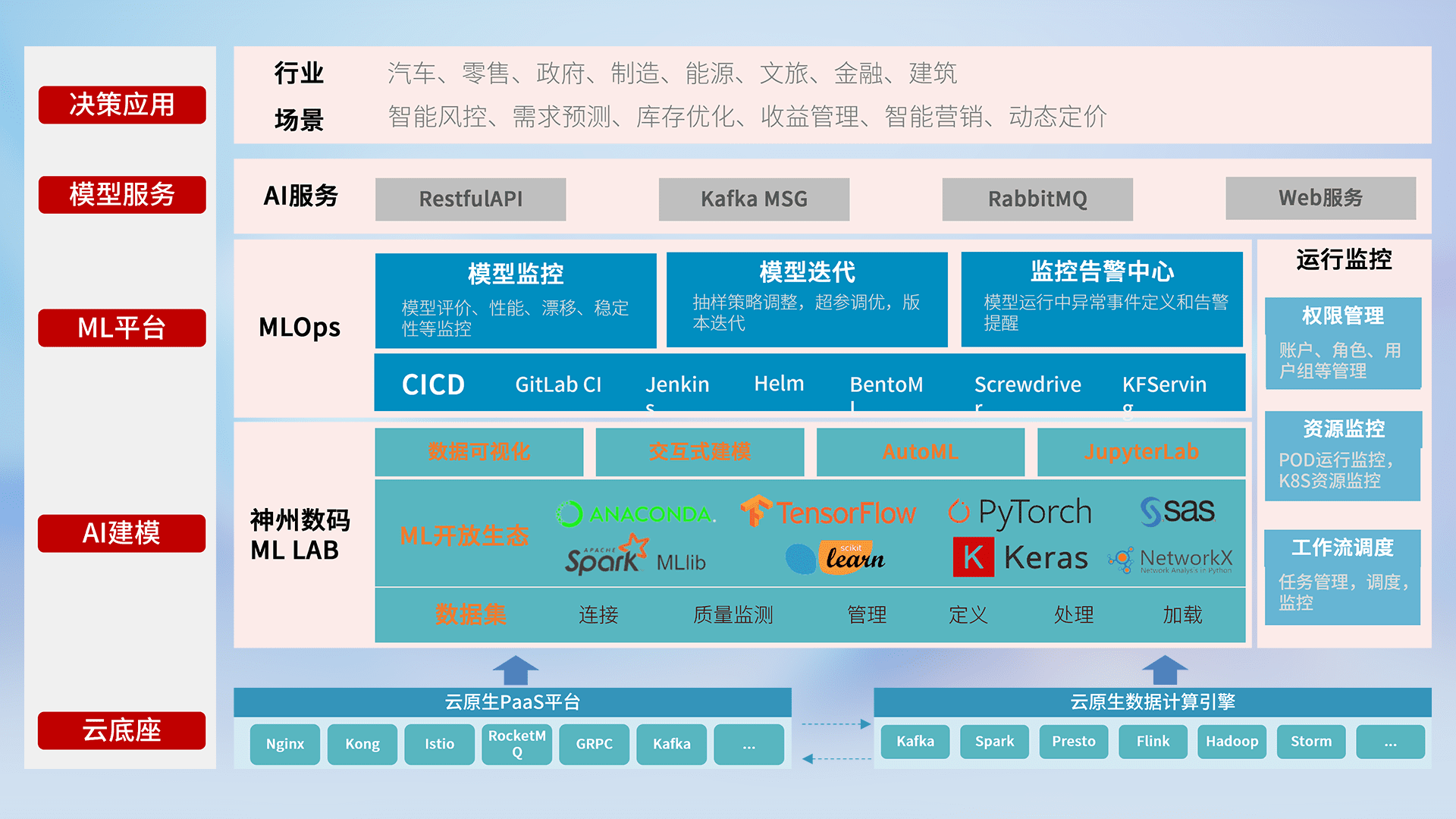 数据+模型双引擎驱动,,面向智能服务场景,,,快速灵活利用AI技术,,,,支持业务决策,,,,助力企业智能化转型破局。。